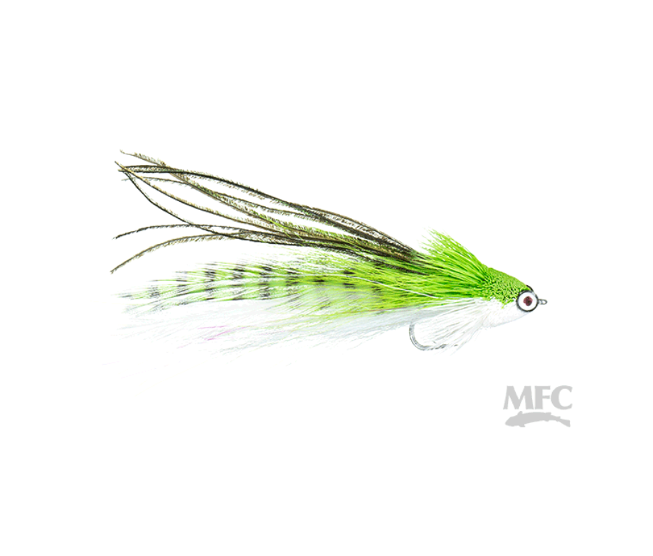 A fly with a deer hair head, peacock herl, and bucktail, all tied on a stout saltwater hook. Great for bass, tarpon, pike and many other salt water species.