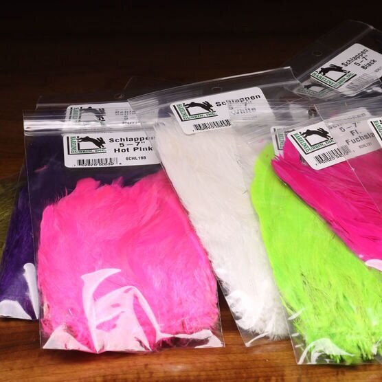 Schlappen feathers make great streamer bodies. Add bulk and length without weight! These feathers are very webby and come in 5”-7” in length. Use them as tail sections or palmer them for collars like we do on the Trojan Horse fly.