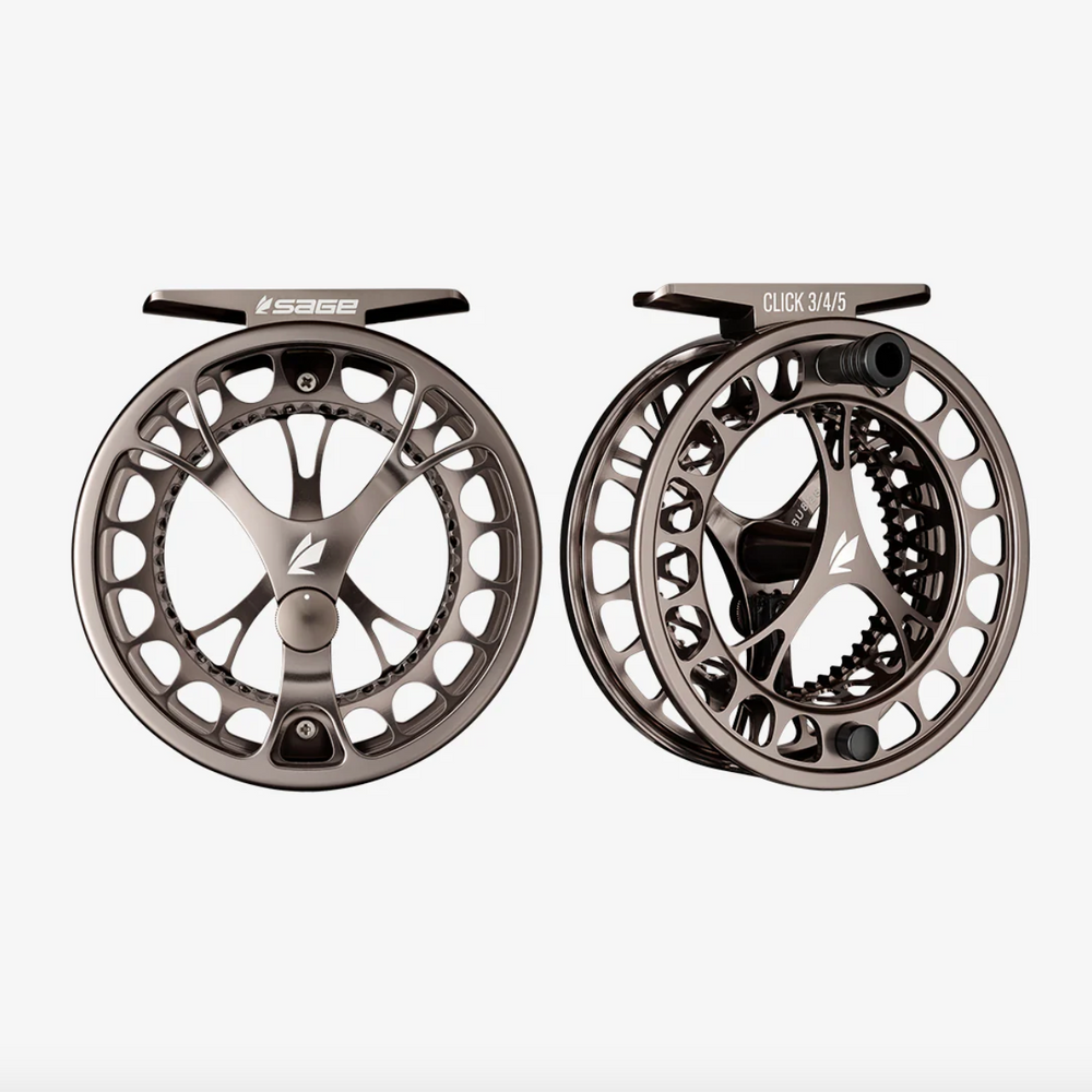 Sage's new CLICK Series reels are a performance and cosmetic upgrade from the original CLICK series. The enhanced CLICK features larger arbor diameters creating a larger palming area for fighting fish and quicker line retrieval while maintaining backing capacities. The CLICK aesthetic has been elevated through new hole patterns and a refreshed, modern design that speaks to its lightweight and minimalist yet functional characteristics. The proven performance of the adjustable click and pawl drag design of the original is featured in this new CLICK reel series.