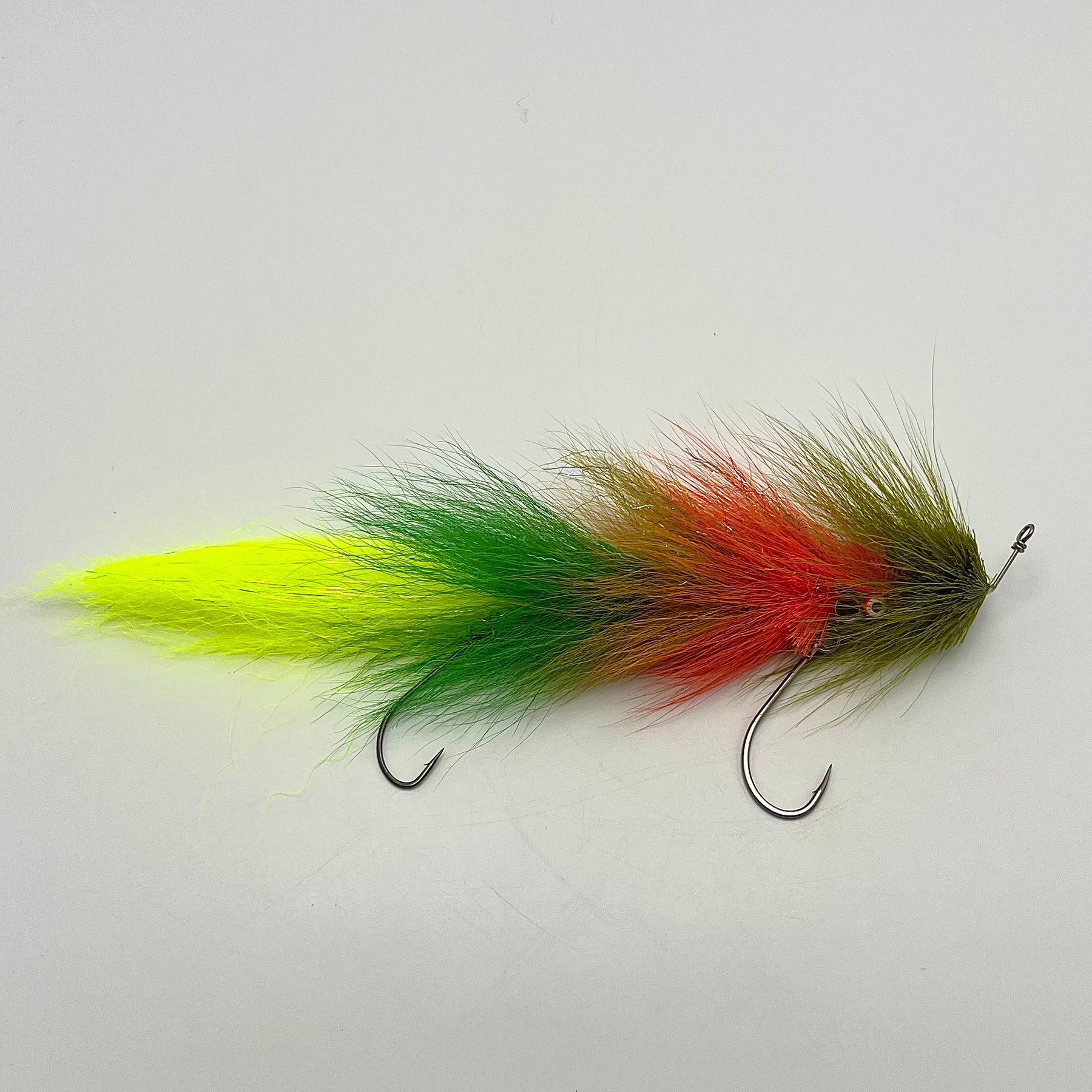 Tied and designed by Musky Fool’s Tim O’Connor, the Mega Rizzler is a weighted, articulated bulkhead fly.  The Mega Rizzler kicks, glides and jigs!  The Rizzler is designed to get down deeper than your traditional Buford or bulkhead fly, while maintaining the action we like in these unweighted patterns.