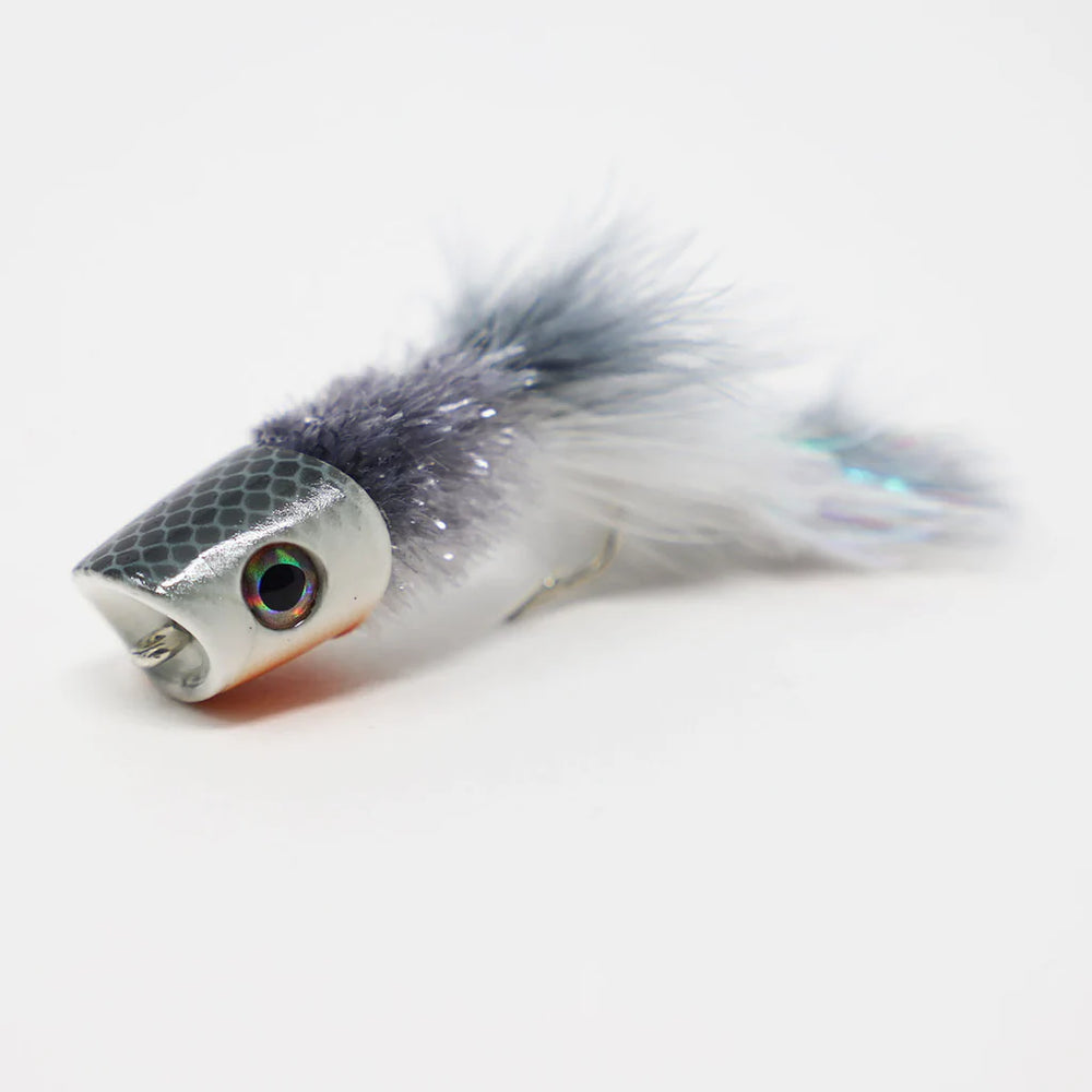 Offer predatory fish a vulnerable easy meal with this articulated popper designed to imitate a baitfish sipping at the surface with its body dangling down in the water. The Howitzer Articulated Baitfish Popper is ideal for predatory freshwater and saltwater fish species that feed on the surface, such as smallmouth, largemouth, stripers, redfish, snook, and more.