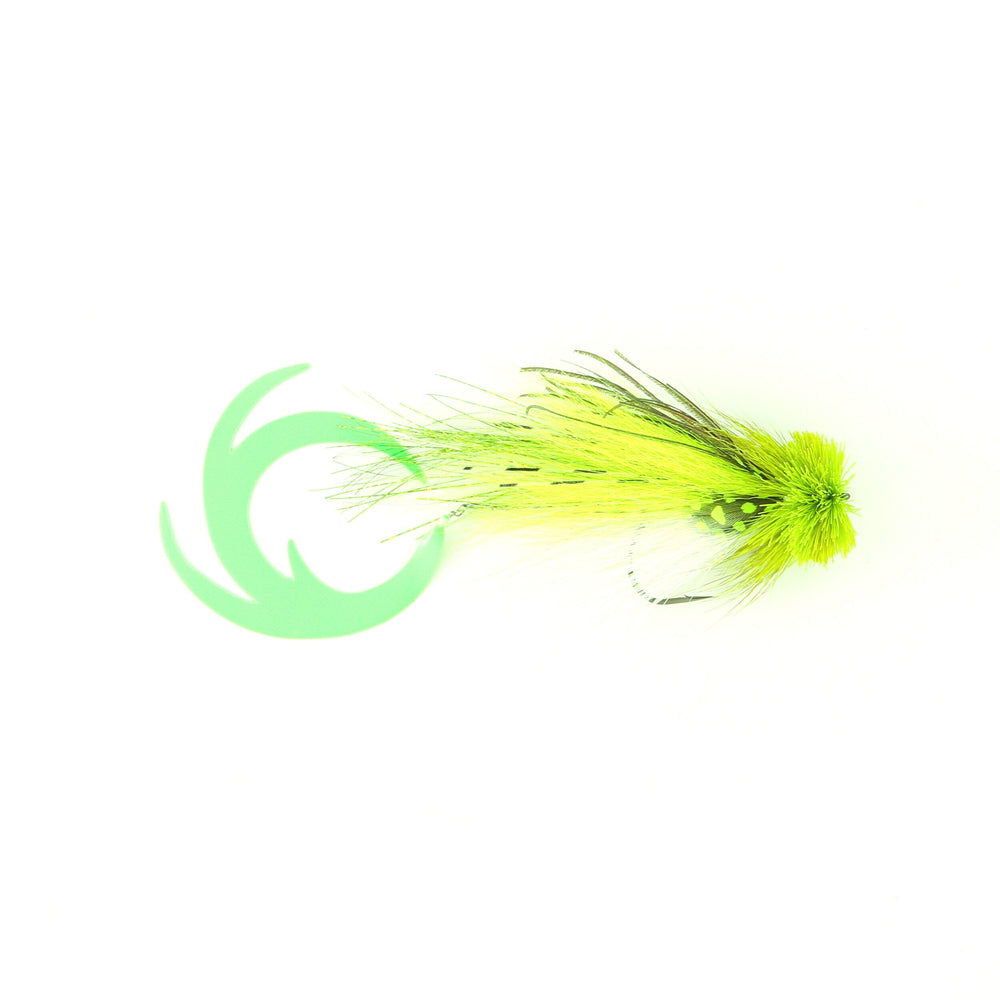 Single Buford Musky Fly with a Pacchiarini XL Dragon Tail. Tied on a AHREX TP610 6/0 hook with Mark’s signature lake head style (slightly bulkier than the river style). Tails are tied on snaps and are interchangeable.