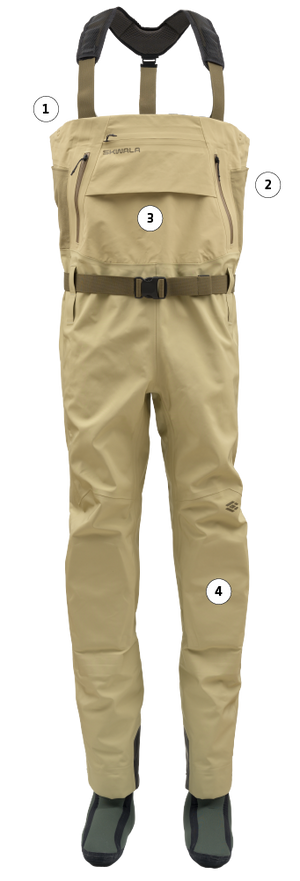 We built the Backeddy Wader with an ultra-dense 100% polyester microfiber face textile for increased durability and smooth comfort; then finished it with a 4-layer waterproof/breathable laminate for submersible functionality. An anti-microbial finish to the interior wader scrim prevents odor and mildew build up. This textile package provides an ultra-durable shell fabric for increased resistance from punctures and tears. The Backeddy Wader was designed for extreme performance, unmatched durability and incredible comfort.