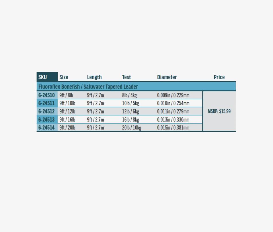 Abrasion resistant, knotless fluorocarbon leaders that are perfect for saltwater fishing in clear water.