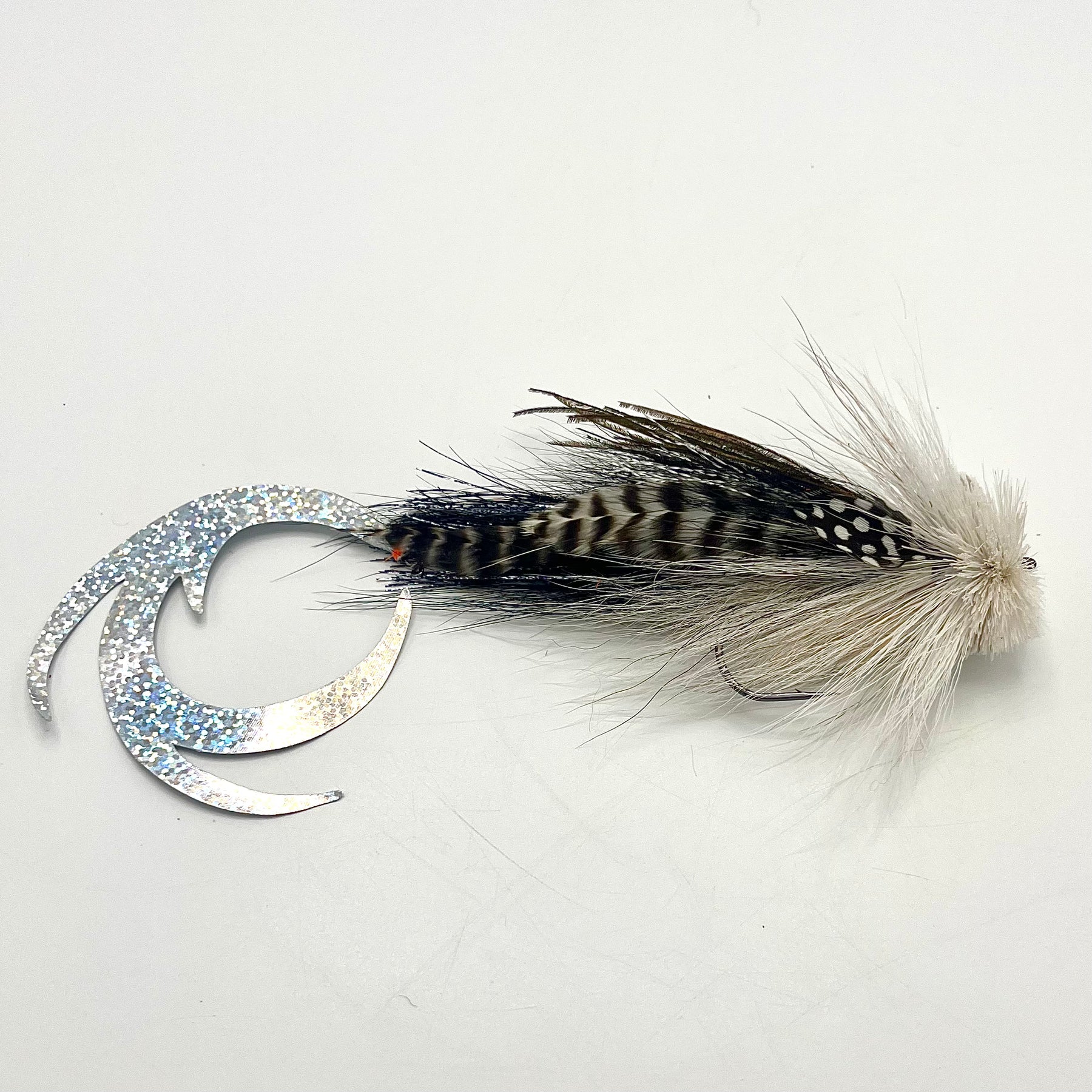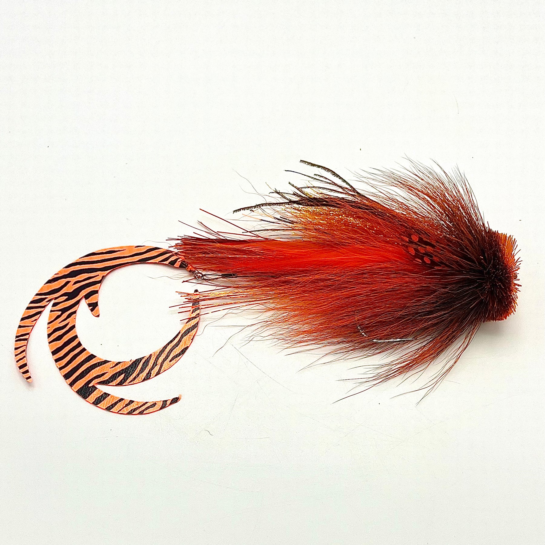 Mosca almizclada de Buford única con cola de dragón Pacchiarini XL. Atado a un anzuelo AHREX TP610 6/0 con el estilo de cabeza de lago característico de Mark (un poco más voluminoso que el estilo de río). Las colas están atadas con broches y son intercambiables.