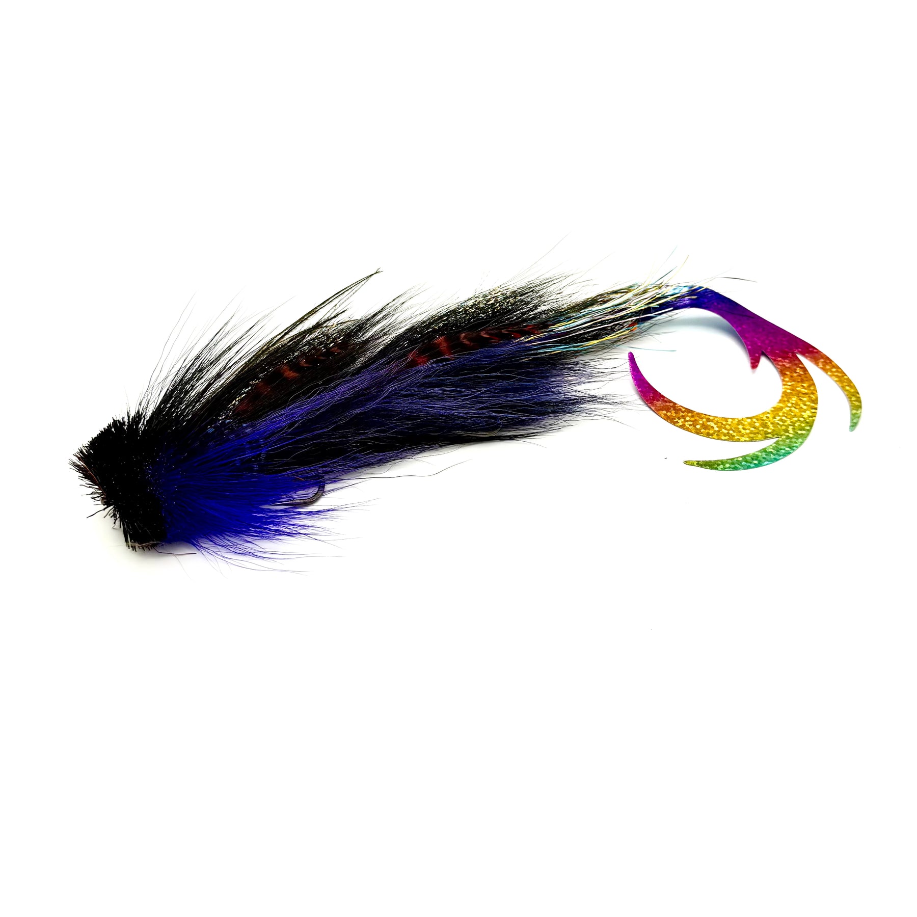 Moscas dobles Buford Musky con cola de dragón Pacchiarini XL. Atado a un anzuelo AHREX TP610 6/0. Las colas están atadas con broches y son intercambiables.