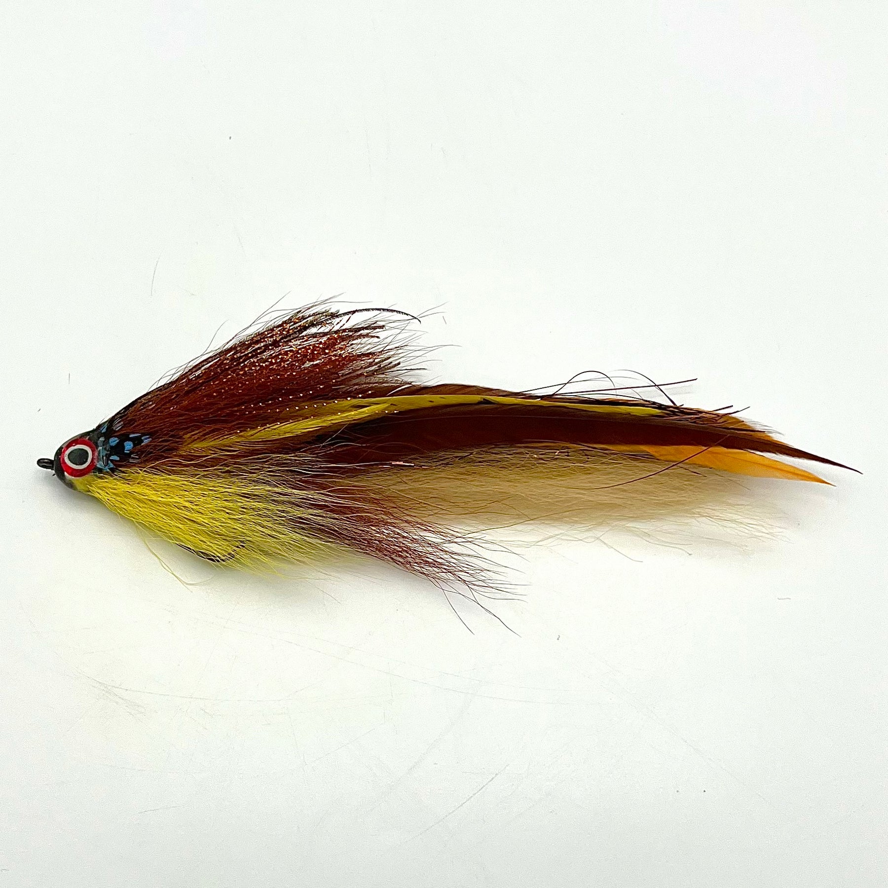Mosca almizclada de pececillo único. Atado a un anzuelo Ahrex PR320 de gran calibre. Ojos de 10 mm sellados con curado UV Raid Zap para una durabilidad a largo plazo. Mosca liviana que es fácil de lanzar en pesos 10 o más. Pesca tan pronto como toca el agua. Fácilmente pescable con una línea de hundimiento intermedia hasta completa desde lo alto de la columna hasta lo más profundo. Gran patrón para cualquier pez depredador.